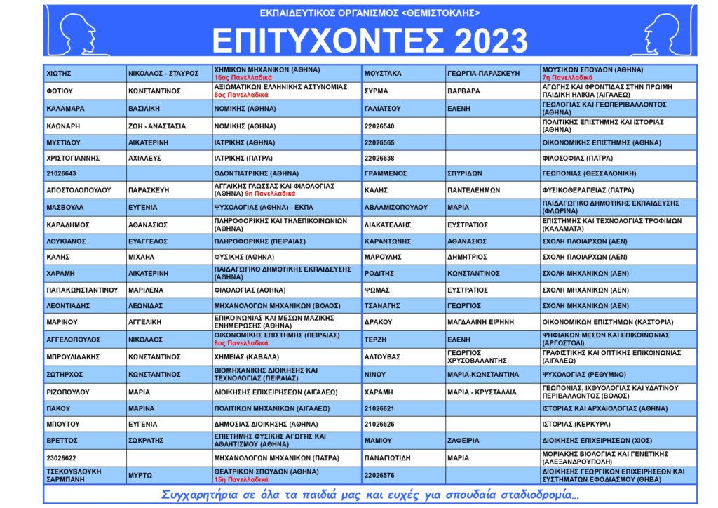 Συγχαρητήρια σε όλους μας τους μαθητές για τα εξαιρετικά αποτελέσματα στις Πανελλήνιες!