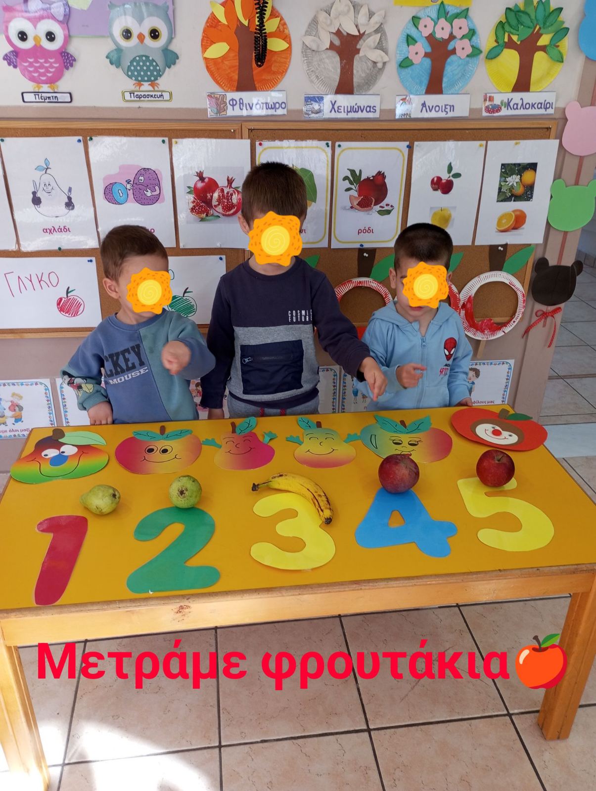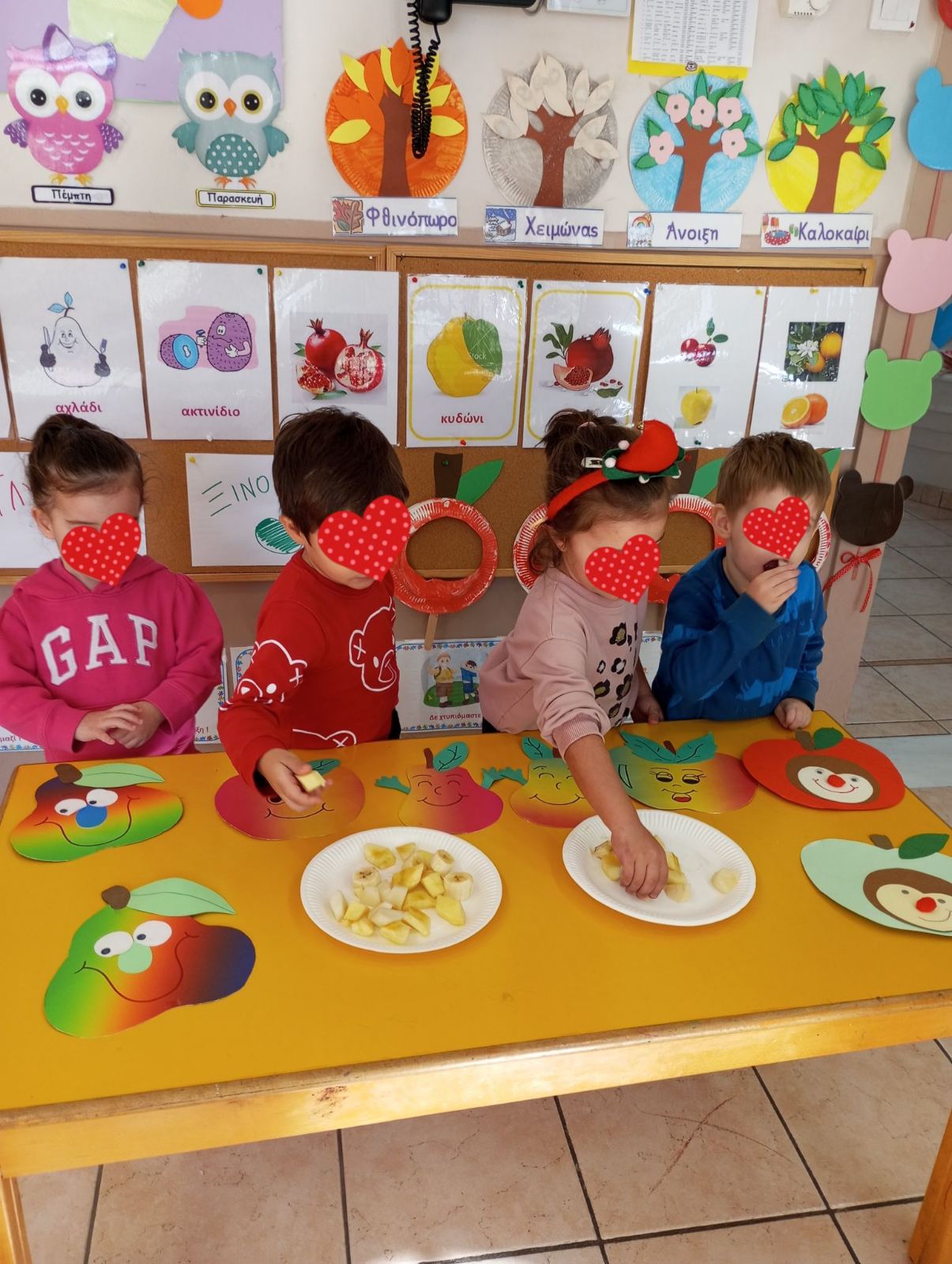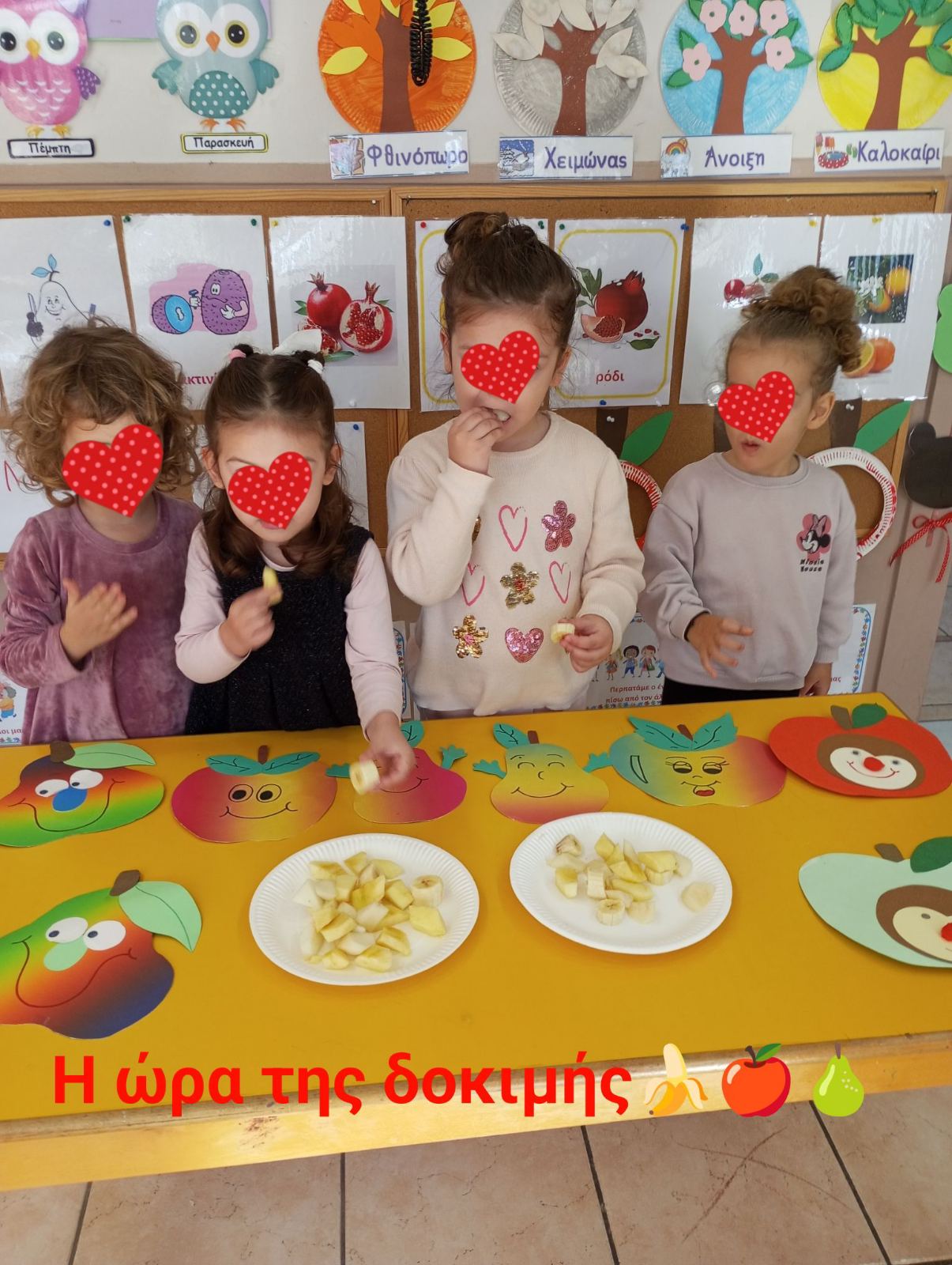 Οι τάξεις του παιδικού σταθμού γέμισαν με χρώματα και αρώματα….με φρούτα του φθινοπώρου.Τα μυρίσαμε, τα κόψαμε και εννοείται ότι τα φάγαμε.