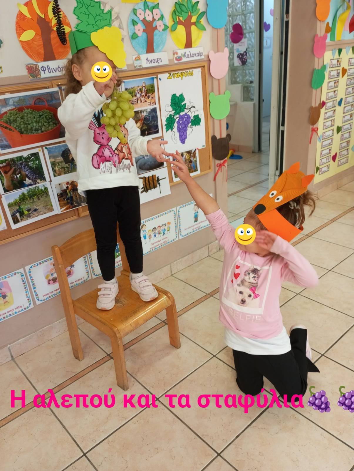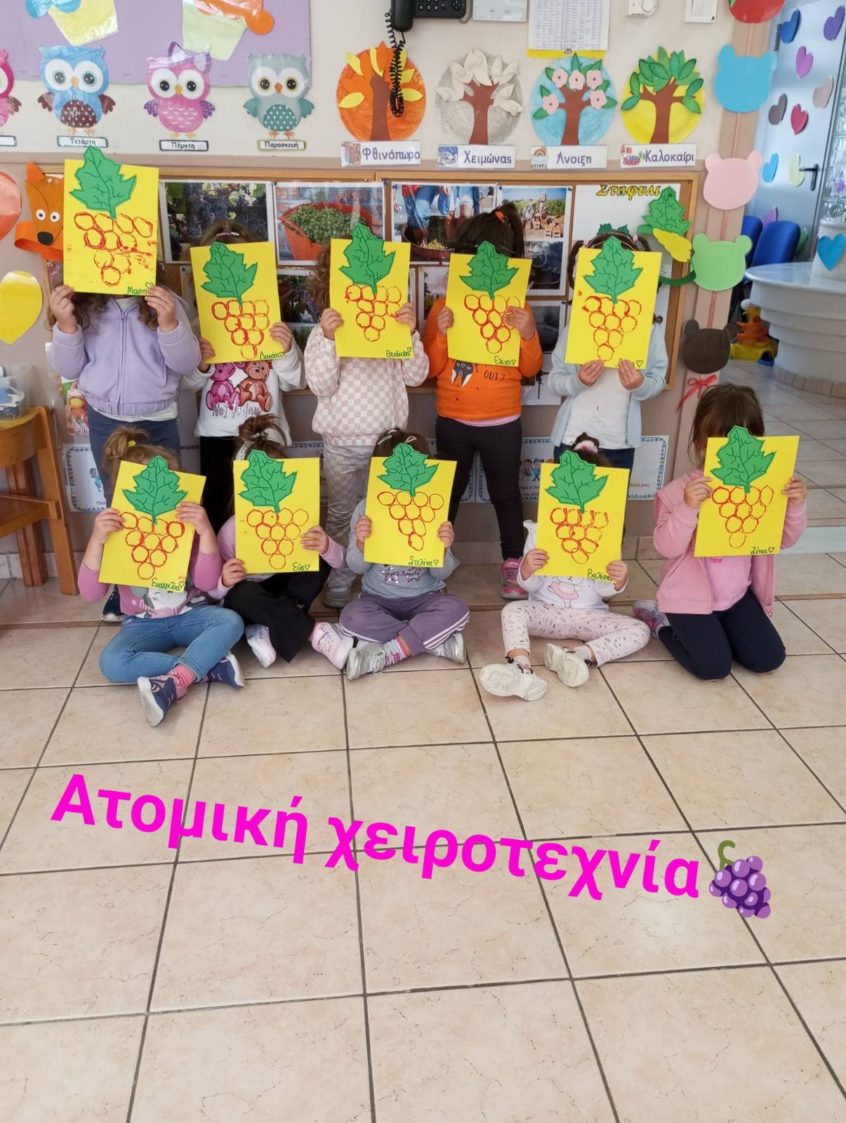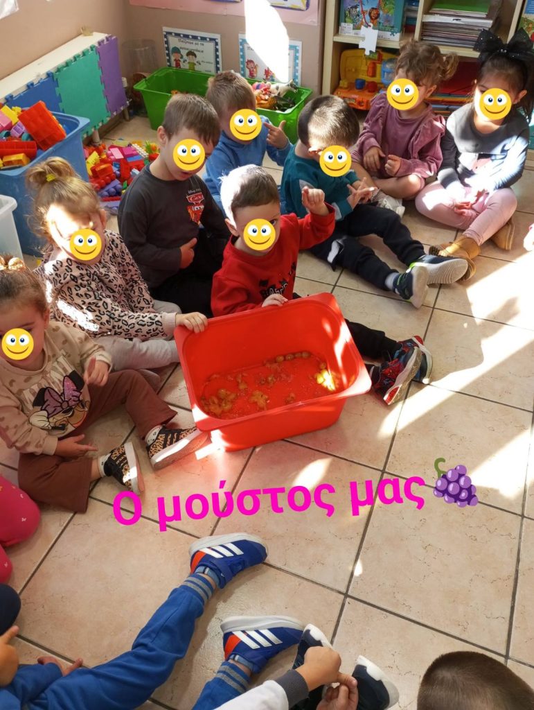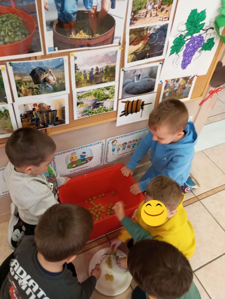 Τα μικράκια του παιδικού σταθμού μίλησαν για τη διαδικασία του τρύγου.Δοκίμασαν σταφύλι ,μουστοκούλουρα και έκαναν κατασκευούλες με θέμα το σταφύλι.
