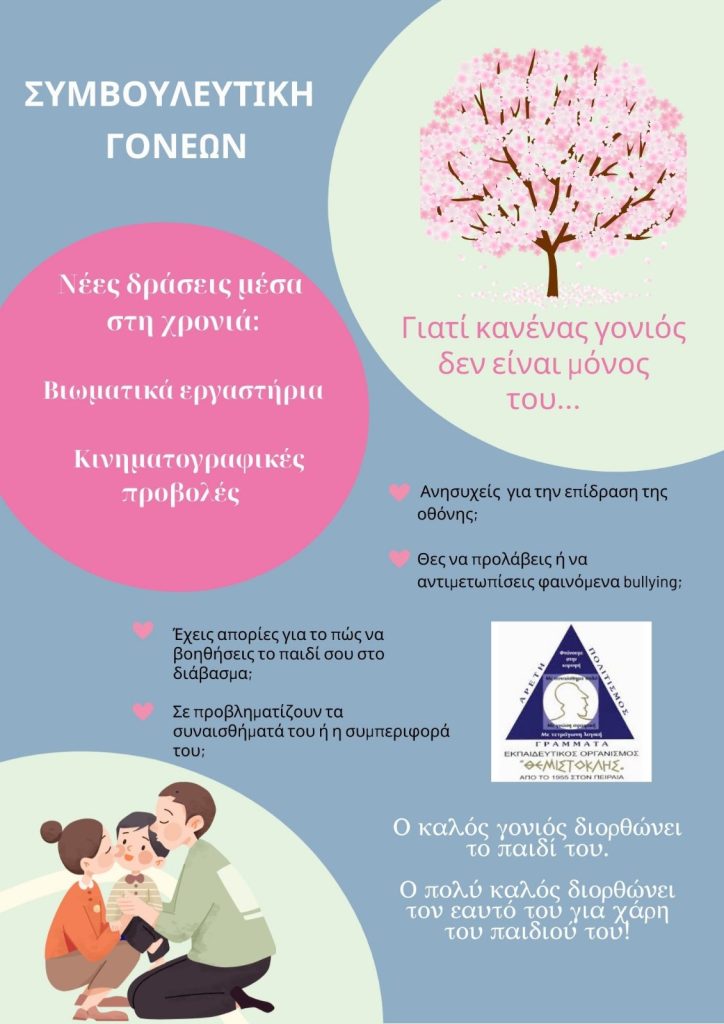 Με χαρά σας περιμένουμε στις 6 και 20 Οκτωβρίου στις συναντήσεις της Συμβουλευτικής Γονέων του σχολείου μας.