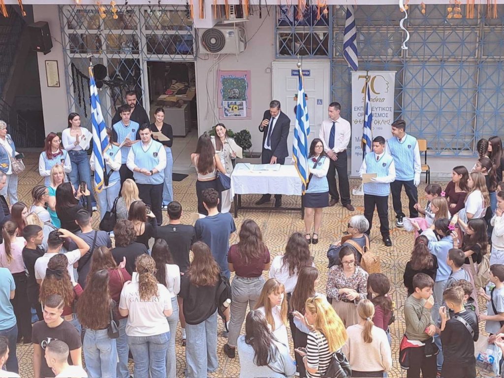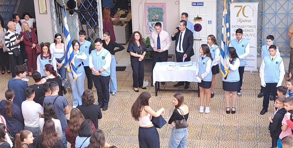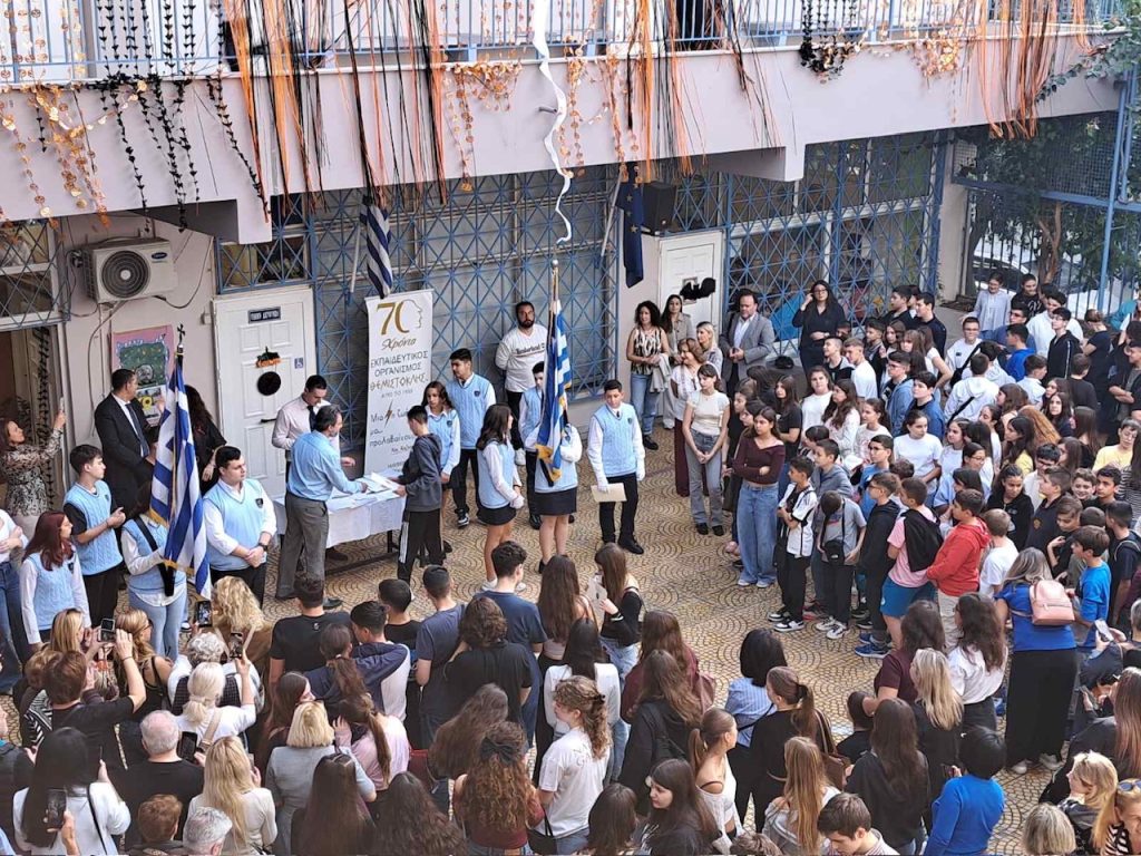 Σχολική εορτή, επιλογή σημαιοφόρων και παραστατών, απονομή αριστείων και βραβείων.
